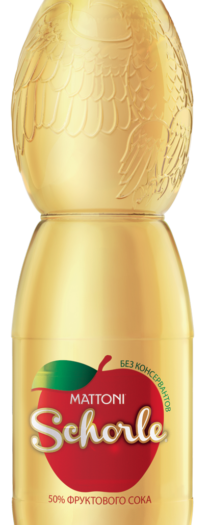 50% фруктового сока и 50% газированной Маттони. Без сахара, искусственных подсластителей, консервантов и красителей. Это новая яблочная Маттони Шорле. Твоя новая страсть.
